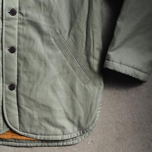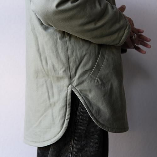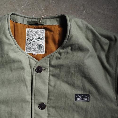 襟ぐりと裾のカッティングにGOHEMPらしい遊びを効かせた中綿ジャケットです。
