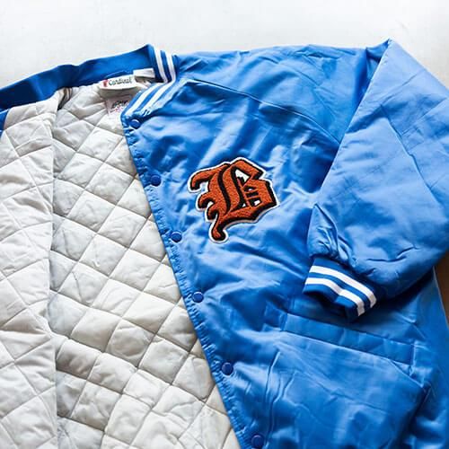 贅沢にも"B"の大きめサガラワッペンが胸に鎮座し、シンプルながらもしっかりと存在感を放つスタジャンです!!!
