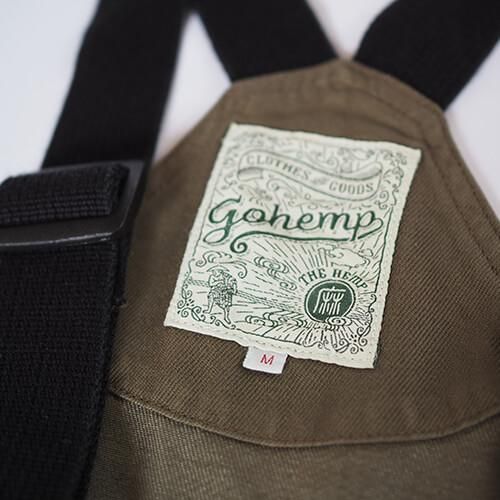 GOHEMPよりコットン65%、ヘンプ19%、リサイクルポリエステル16%という混率から成る