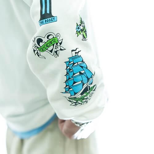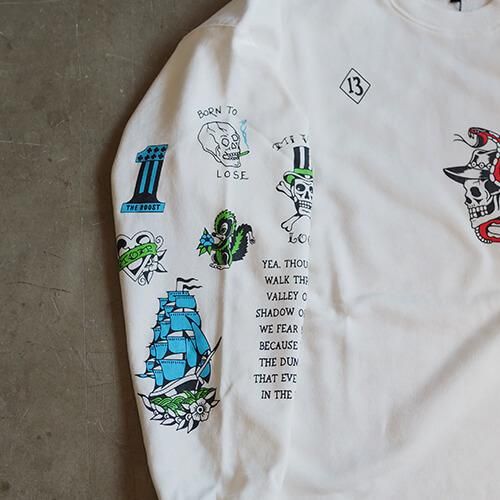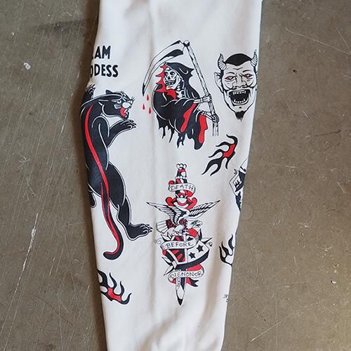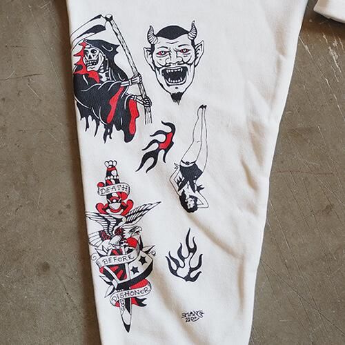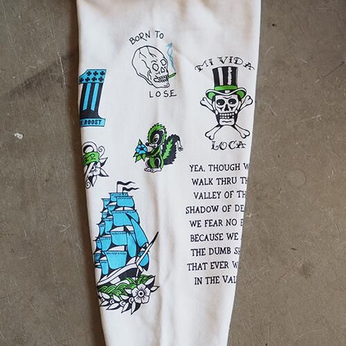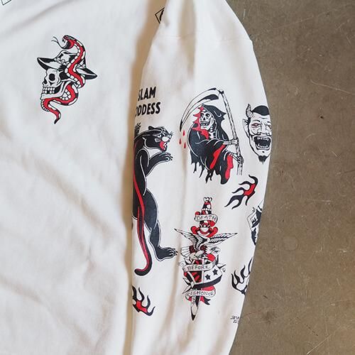 グラフィックはこれまた名古屋から全国その名を轟かせる『THUNDER ALLEY TATTOO CLUB』のMANO氏が60年代から70年代のLA-NYのアウトローバイカータトゥーをモチーフに描き下ろした逸品。