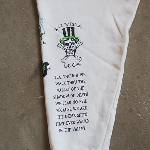 シルクスクリーンにてプリントした後に縫製する手法で手間と時間と情熱をかけて作り上げられた一枚に仕上がっております。