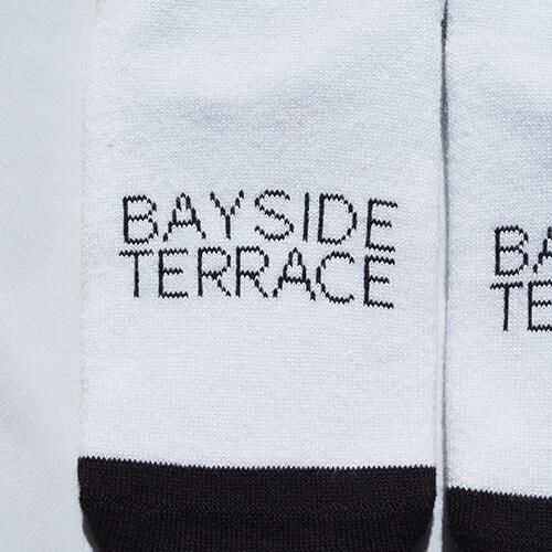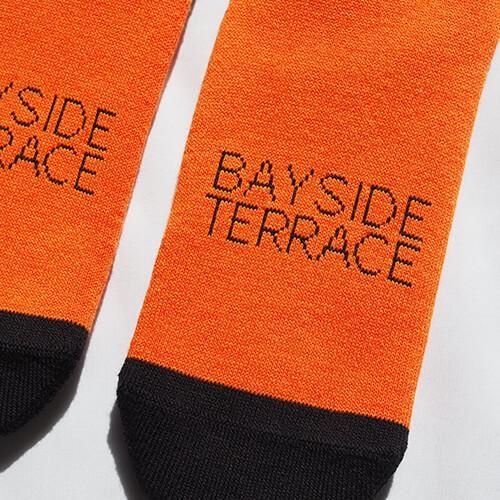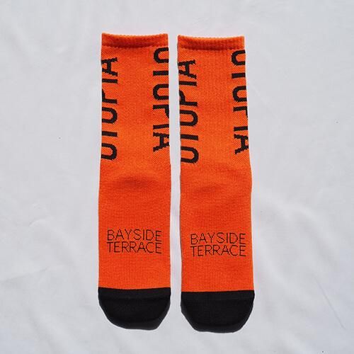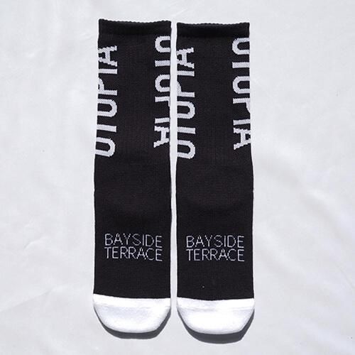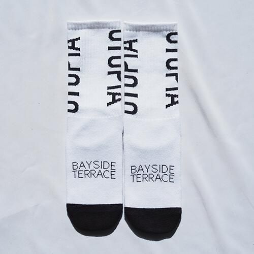 UTOPIAのロゴをソックスの側面に、そしてUTOPIAのサブタイトル"BAYSIDE TERRACE"を足の甲にドロップ。