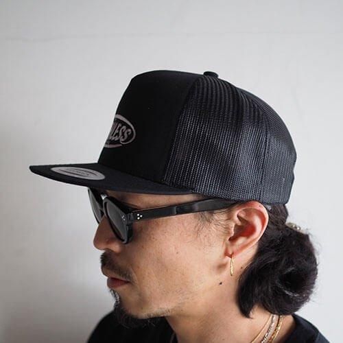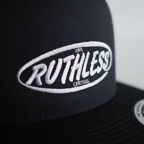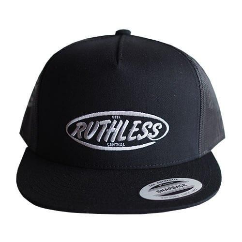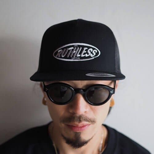 フラットバイザーのメッシュCAPにRUTHLESSロゴを