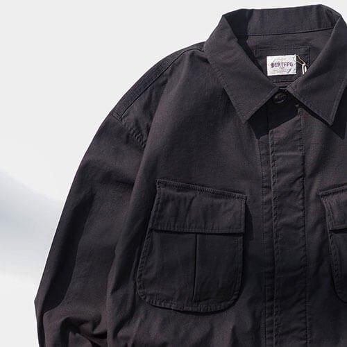 60年代から70年代にかけてベトナム戦争で採用された通称ジャングルファティーグジャケットを大胆なショート丈にBEAT.F.P.G的改良を加えた逸品。