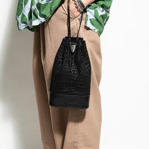 また財布、携帯、タバコくらいが綺麗に収納できるオリジナルのレザー巾着となっております。
