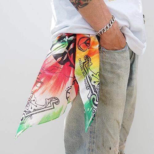 タイダイをモチーフにしたプリントバンダナで御座います。