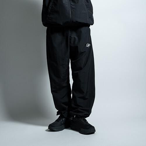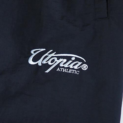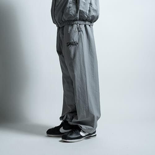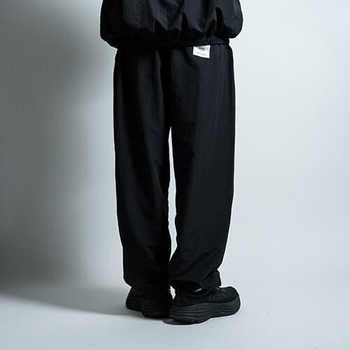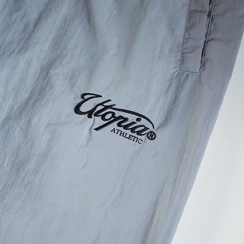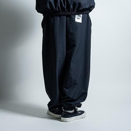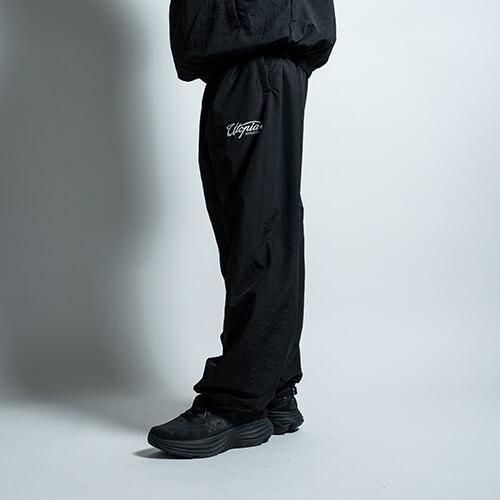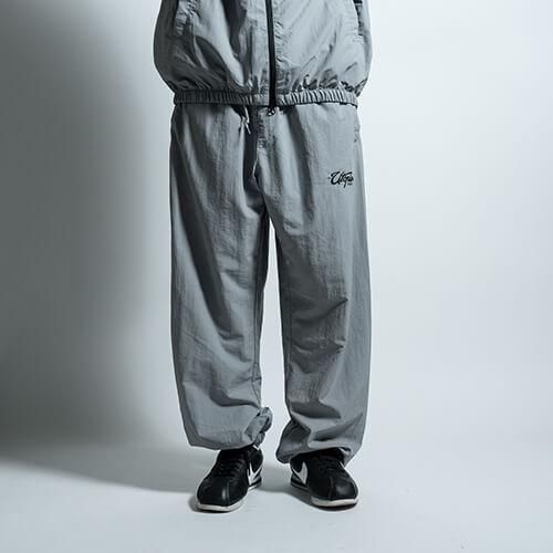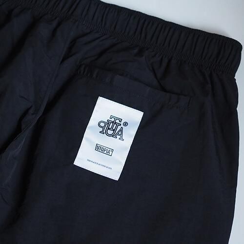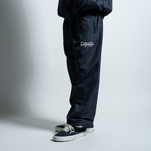タフなナイロンをコットンのように加工して織り込んだ、やわらかな生地が魅力のトレーニングパンツで、ミリタリーのトラックパンツのようなルーズフィットでバルーンシルエットを楽しんで頂けます。また"UTOPIA TRACK JACKET"と同生地で製作されているので、セットアップでの着用が可能な逸品です。