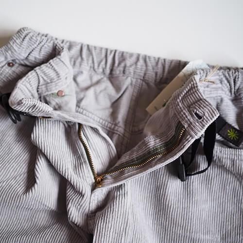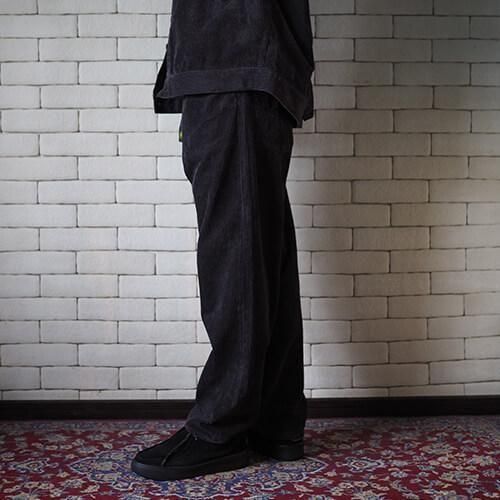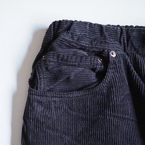 適度なボリュームとコーデュロイ特有のしなやかさをもちながらゆるくなり過ぎない安定した生地感です。また製品染めによるアタリ感やムラ感が一層雰囲気のあるものに仕上がっています。