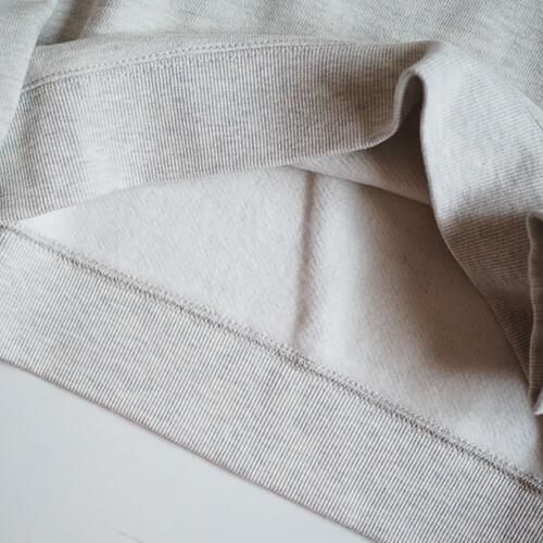 3シーズン着用しやすい厚過ぎない適度な肉感でゴワつかずソフトな肌触りが特徴です。裏面は肌触りが良い起毛加工を施し、直接肌に触れてもストレスを感じません。洗濯を繰り返してもくたりにくい丈夫さだけでなく風合いの豊かさが増し経年変化を楽しめます。