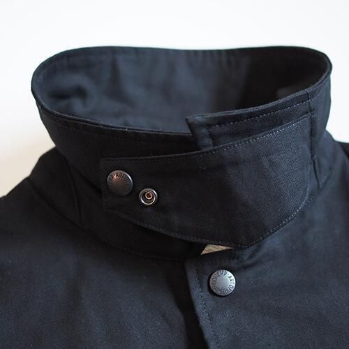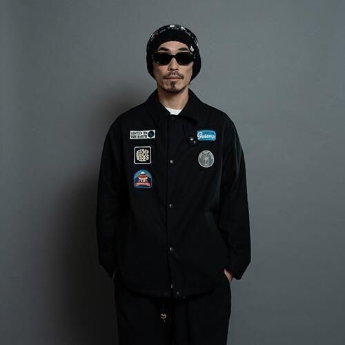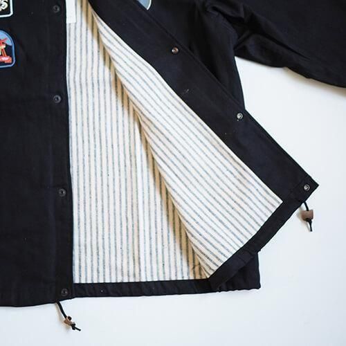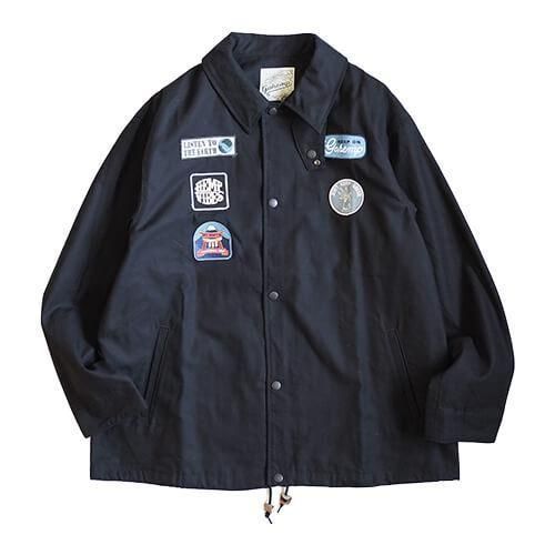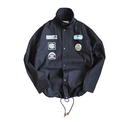 オリジナルワッペンをあしらったチンストラップ付きコーチタイプジャケット。